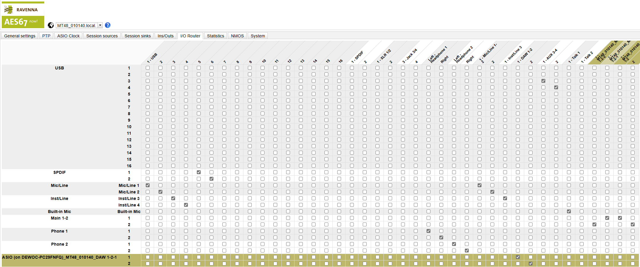 Die „Erweiterte Seite“ gibt Ihnen Zugriff auf viele weitere Einstellungen des MT 48 – zum Beispiel können Sie die I/O-Routing-Matrix verwenden, um die Eingänge und Ausgänge sehr einfach zuzuweisen. Dies ist manchmal bequemer, als die Einstellungen direkt über das MT 48 Display vorzunehmen, und ermöglicht Ihnen außerdem die Nutzung erweiterter Routing-Optionen, die nicht direkt am MT 48 eingestellt werden können.