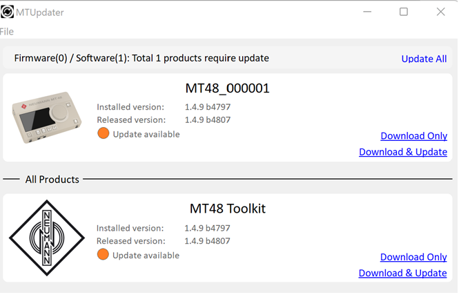 You can obtain the latest MT48 Toolkit from within your Neumann account under Software Download upon registering your interface.