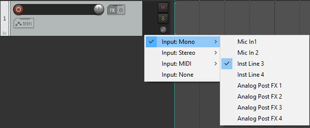 On a track, navigate to the I/O settings. The input will be the input your source is coming in from on the MT 48 (Mic 1, Mic 2, Line 3-4, etc.)