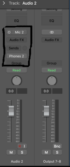 On a track, navigate to the I/O settings. The most accessible way is via the Inspector panel on the left side of your screen with a track selected. The input will be the input your source is coming in from on the MT 48 (Mic 1, Mic 2, Line 3-4, etc.)