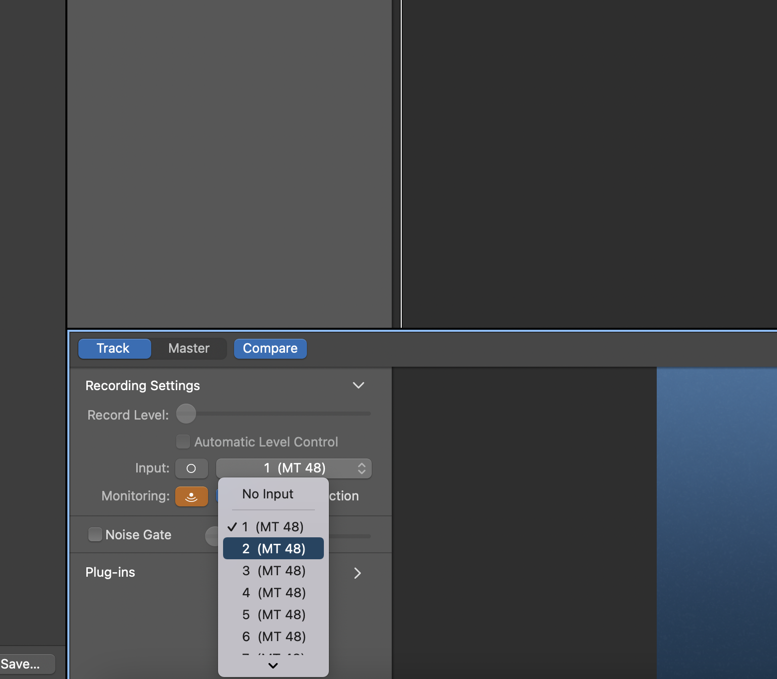 Prior to recording, you will need to check your input level coming in to the interface. You do this through the MT48's Preamp module for the appropriate input selected. If you are recording more than one source at the same time, you will need to do this for each input. See "Setting Up a Track to Record" in the Tutorials guide.