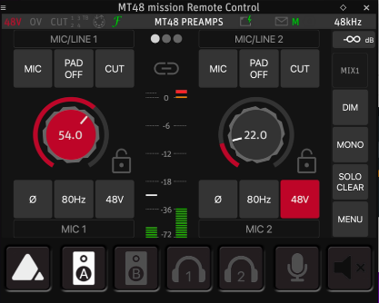Double Pad (input volume reduction by either -12, -24 dB on Mics 1-2)