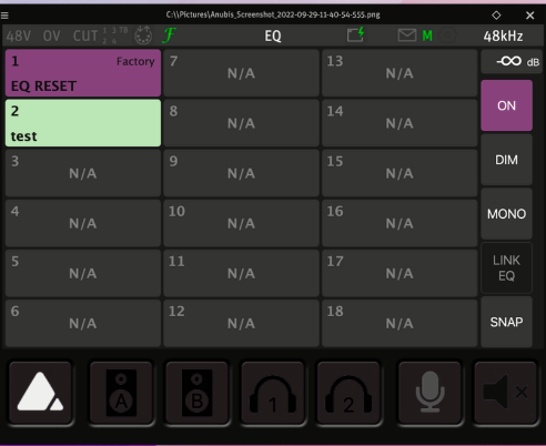 You can reset a frequency band by long pressing the Gain dial on the touch screen.
