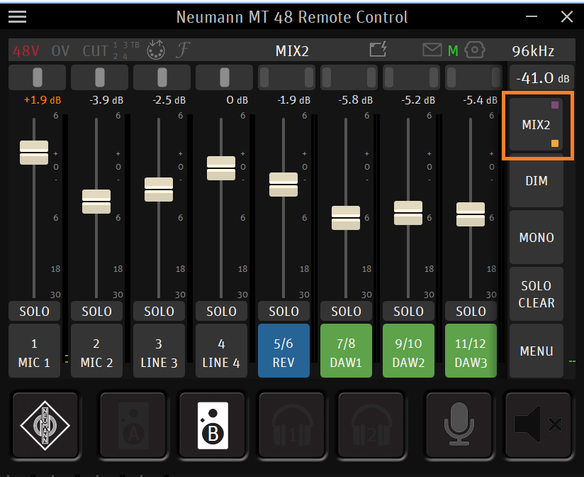 Back in the mixer the total amount of reverb can be adjusted using the REV fader.
