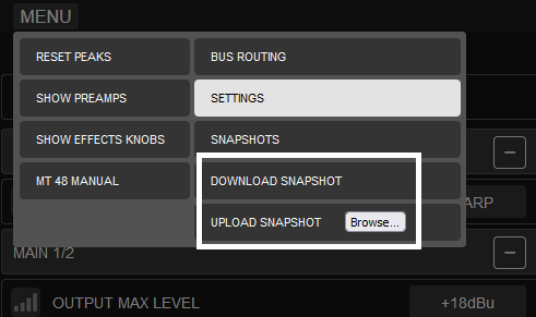 When you tweak an effect to your liking, simply click SNAP in the lower right, select an empty Bank, and give it a name, comment (if desired), and color, then press STORE. When you load this effect up on another track, you can now click SNAP to find this ready to be recalled when desired. aSnapshots can also be downloaded and uploaded from Web Control within in the top left Menu for import and export.