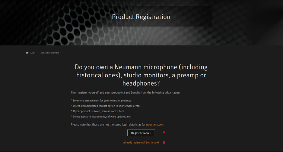 すでに登録済みの場合は、「Already Registered? Log in now!」をクリックしてログインします(B)。